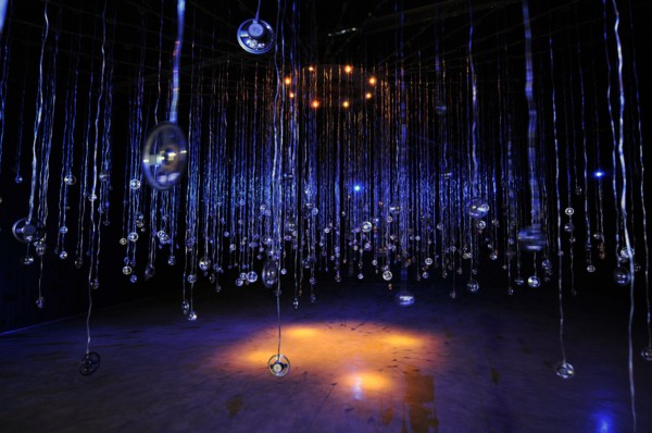 When I first saw “Witness” in June 2000 I came to it cold; all I knew about it in advance was that an acquaintance I’d bumped into by chance one day had thought it brilliant and told me I must go and see it – and I must go that week as it was about to close. At the time I knew relatively little of Hiller’s work but my friend had been insistent and his enthusiasm spurred me to seek out the disused chapel in Notting Hill where the work – an Artangel commission – was on show. Told the installation was upstairs, I climbed the spiral staircase in complete darkness (this may not have been intentional: on my descent the stairs were dimly lit) and emerged into a magical, otherworldly space. “Witness” takes the form of a darkened room in which hundreds of loudspeakers hang, at various heights, some out of reach to all but the tallest of visitors, catching the light from a ring of lights at the centre of the work and beams directed into the centre from the edges (in the chapel the external light came from windows masked in blue). Entering the space, it’s immediately apparent that the cacophony of voices that fills the room emanates from the speakers. Getting closer it becomes clear that the voices speak in many languages and that each voice tells a story – a true story – of an encounter with a UFO or similarly unexplained phenomenon. At times the cacophony dies down and a single voice fills the room. Spookily, this always seems to be the voice you were already listening to. The stories are ones Hiller found on the internet; they are given voice for the installation, spoken in their original language. Some are recent, others decades old. Some are from named sources, others anonymous. Many start with a disclaimer indicating that the storyteller expects to be disbelieved. And, of course, given that the stories come from around the world, many are in unfamiliar languages.