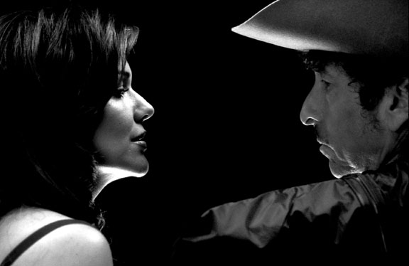 Still, you can’t spend that much time trying to hide without showing something of yourself – and not just how slight you look next to John Goodman. Masked and Anonymous shows us a Dylan that isn’t comfortable with crying, but enjoys delivering a deadpan joke. In more serious moments we glimpse a man whose discomfort about his status seems born not just out of scepticism about image, but also out of deep self-doubt, maybe even moments of self-loathing. But the moments that seem most true are the times Dylan plays with his band to create some riveting versions of Dylan’s songs. So in the end, the Dylan that makes the makes the strongest impression is a man most at ease talking through (or hiding inside) the varied ways he can shape and twist his own songs.