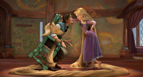 The latest generation of Disney princesses – Tiana in The Princess and the Frog and Rapunzel in Tangled – are very different from their early counterparts. They make their own decisions and have their own plans. Neither is looking for romance. Love is something which happens to them while they’re busy doing other things. Tiana wants to start her own restaurant and gets sidetracked when she kisses the frog prince and becomes a frog herself. The only reason she’d agreed to kiss the frog in the first place was in exchange for cash. As a heroine is, these days, expected to get to know her prince before riding off into the sunset with him, the boys have become more important characters themselves, complete with character arcs – the princes in Snow White and Cinderella didn’t even get proper names for themselves, let alone a personality between them. Frog Prince Naveen changes from a callow pleasure-seeker to a personable young man in the course of the story. Tangled’s chancer and thief Flynn Rider turns over a whole new leaf. If you want proof that Disney princes and princesses have moved with the times, it’s in Flynn’s last few lines in Tangled: “But I know what the big question is? Did Rapunzel and I ever get married? Well I am happy to say after years and years of asking, I finally said yes.”