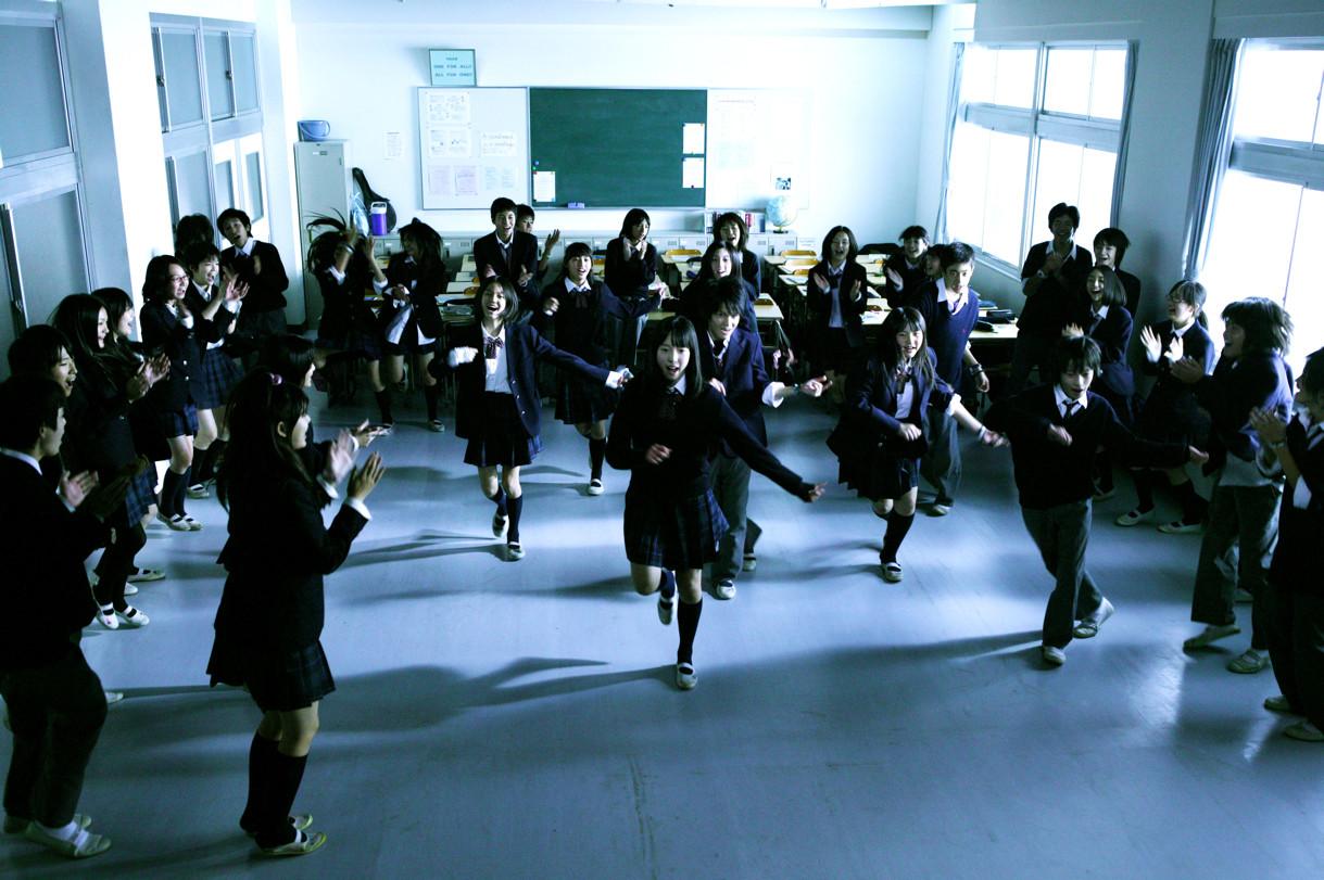 Something that was clear in Nakashima’s earlier films was that he has an extraordinary visual sense, and that remains true, but he almost seems to have inverted the look he used for Memories of Matsuko with this film. Gone is the Amelie-like soft focus and bright colour, and in its place we have pin sharp darkness, a greying of colour and frequent use of slow motion. The slow motion is interesting, because I’m not sure there’s a more abused technique in cinema, and it’s certainly earning its bad name courtesy of the likes of Michael Bay and Zack Snyder, but Nakashima’s use of it draws more from Lars Von Trier’s recent work, slowing time to the point that the film frequently seems to become a moving painting. Nakashima wants us to explore every detail of his frames, and with good reason, because those frames are impeccably crafted. It also seems to me that the slow motion is about registering the gravity of every moment, even those that seem small to begin with; appreciating how a forced kiss brings Shuya (Yukito Nishii) and Mizuki (Ai Hashimoto) together, or how an attempt by a teacher to bring the class together excludes Mizuki. All these little moments end up contributing to the way events unfold, and Nakashima’s technique brings that home vividly.