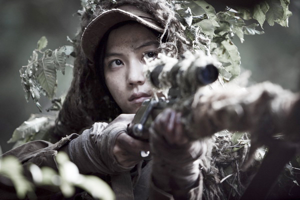 The battle for Aerok Hill is the setting for Jang Hun’s film The Front Line, South Korea’s official entry to the Oscars this year. The film’s focus is Kang Eun-pyo, a South Korean intelligence officer sent to Aerok hill to investigate allegations of a mole in Alligator company, currently stationed there. North Korean mail has been discovered being sent through the South Korean postal system, and the company’s commanding officer has been shot and killed by a South Korean bullet. When Eun-pyo arrives at the hill, along with the new commanding officer and a raw recruit, he finds the company in disarray. The acting commander is addicted to morphine; the men wear North Korean uniforms to keep warm and refer to each other as “comrade” and the camp is overrun with children orphaned by the war. He also finds Kim Soo-hyeok, a college friend he thought killed in action several years before. Soo-hyeuk seems transformed (not least by the removal of his glasses,) from the childlike and terrified figure we see in flashback to a brutalized and efficient killer. Where once he prayed to be saved, he tells Eun-pyo, he now only prays to kill. The threads of the narrative paint a disturbing picture – the men have no reason to be fighting, and see no real difference between themselves and the enemy, and yet the warfare is unending, constant and harrowing. When Soo-hyeuk prays for deaths, he doesn’t differentiate between sides – as “only when one side is gone, will this stop.”