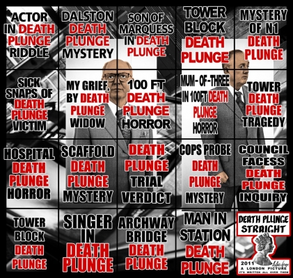 There are several issues here for me. Mainly, who on earth thought this work strong enough to sustain simultaneous exhibitions at four different locations (three of them in the same city)? The London Pictures are based on newspaper headline posters collected by the artists from outside newsagents’ shops over a period of several years. This is the largest body of work yet made by Gilbert and George and is described by White Cube as “an epic survey of modern urban life in all its volatility, tragedy, absurdity and routine violence. … In their lucidity, no less than their insight into the daily realities of metropolitan life, the ‘LONDON PICTURES’ are Dickensian in scope and ultra-modern in sensibility. … Drawing directly on the quotidian life of a vast city, the ‘LONDON PICTURES’ allow contemporary society to recount itself in its own language.”