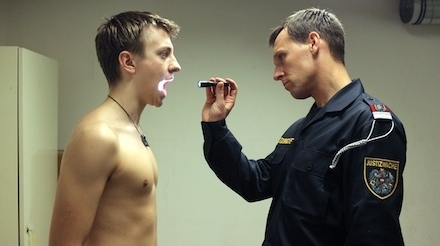 Thomas Schubert’s central performance goes a long way to getting us on his side. I can’t not feel for him as he gets the chances to share forbidden beer with a hot American student on his train back to prison. I was tempted to write that his performance is all the more remarkable because this is his debut film and Schubert is a non-professional actor, but then I remembered how often non-professional actors draw one’s eye in their debut film roles. That said, almost all the performances are strong, especially Georg Friedrich as one of Kogler’s colleagues at the morgue. Markovics makes good use of the kind of drab, functional locations that seem to exist on the edges that run through all cities: industrial estates, car parks, anonymous flats. In one sly shot, the Wiener Riesenrad is just glimpsed in the distance, reminding us that historic, tourist Vienna is close by.