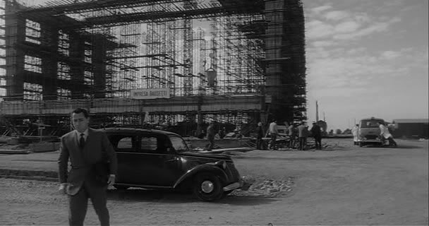 Like our own, the Italian boom was financed by an increase in lending and borrowing – and the protagonist of Il Boom, Giovanni (Alberto Sordi), is struggling to cope with his own debt crisis. The film’s opening scene sees him trying to appease the agency he owes most of the money to. All he gets is a rebuke, and as he is being dressed-down, he’s told that he’s not the only one in his position – the agency has lent out to several individuals, from all walks of Italian society ‘even a couple of priests’. The manner in which debt is an open secret, which cannot be acknowledged, invites parallels with more recent Italian economic history: Everyone knows there is a problem, but there would be a crisis if anyone admitted there was a problem; so no-one does anything about the problem; which just makes the problem worse. An early scene sketches this out: Giovanni plays tennis with a colleague and asks for a loan of three million lire. Looking stricken, his colleague tells him he does not have that kind of money. A pause, then both men start laughing – he was joking of course, Giovanni says. His colleague says of course he knew that, he was playing along, after all he does have that kind of money and even if he didn’t he’d steal for a friend. In that case, I really need it says Giovanni, before the cycle of the stricken look, pause, then laughter repeats itself, a little quicker this time.