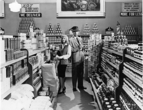 That business with the matches and cigars tells us something about the relationship between Walter Neff (MacMurray) and Barton Keyes (Robinson). The two men are in love. MacMurray’s narration is directed towards Robinson, which almost makes the film seem dedicated to him, and at one point in that narration he says something like “I could have hugged you, Keyes”. There’s another moment, early in the film, where MacMurray smiles at Robinson and there’s a true warmth and generosity in that smile, a pureness almost, that we never see in MacMurray’s face at any time when he speaks to Barbara Stanwyck. There’s something tawdry about their relationship right from the get-go. Stanwyck’s Phyllis Dietrichson is kind of cheap – although in the book James M Cain gave her the name Phyllis Nerdlinger so the film has given her a name which, if not exactly classy, is at least not as conspicuously unclassy. But she still wears a blonde wig, which is as vulgar as it is sexy. In contrast with the pure, almost literally Platonic, love MacMurray has for Robinson, he seems almost infected with love for Stanwyck. Billy Wilder and Raymond Chandler’s script emphasises the way that love seems to have corrupted MacMurray’s senses – as he leaves Stanwyck’s house he talks about “murder that smells like honeysuckle” and “the sour taste of her ice tea”. Rather wonderfully for the contemporary viewer, he tries to rid himself of said sour taste by stopping at a drive-in restaurant and having a beer. The sight of MacMurray being served, and downing, that beer while sitting at the wheel of his car dates the film as pleasingly as the microphone tube he speaks into while he dictates his office-memo narration. So the film works as a portrait of suburban Los Angles in the forties – partly because Wilder seems to enjoy showing us the bland supermarket Stanwyck and MacMurray have secret meetings in, and the ever so slightly oppressive office that MacMurray and Robinson work in. There’s an almost documentary like interest in these institutions, as there also is in the way an insurance company works. The title is now so associated with film noir that it can be easy to forget it is really a phrase once more associated with the small print on insurance policies than murder and betrayal. It’s one of the earliest  noirs but there’s bathos in the film that seems to be already trying to deflate the melodrama and romanticism that would come to define the genre.