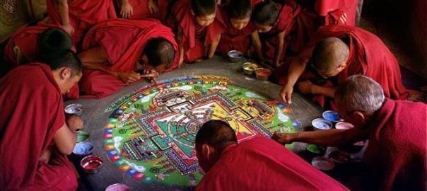 Fricke’s entry point for these explorations is spirituality, but not any particular religion. The films seem to draw as much inspiration and hope from the massed ranks of hajji in Mecca (breathtaking scenes that appear in both Baraka and Samsara) as from the Tibetan Buddhist monks who top and tail Samsara with the creation (and – spoiler alert – destruction) of an intricate multi-coloured sand mandala. Secular or material human comforts are absent from the films, except in commoditised and perverted forms – there is no sex here but prostitution and sex dolls, there is no food here but factory processing of animals juxtaposed with images of fat Yanks guzzling meal deals at Burger King.