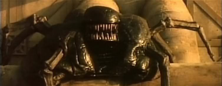 Forbidden World (the story of a genetically engineered mutant alien-human hybrid terrorising the isolated humans on a remote extra-terrestrial research station, based on a novel by E.M.Forster) was not the first of Corman’s Alien, er, hommages – and indeed it recycles sets from the previous year’s Galaxy of Terror, which were designed by James Cameron. It also pads out its meagre runtime in its opening minutes with space battle footage from another Corman production, Battle Beyond the Stars, cheerfully regardless of the fact that there is no narrative justification for it whatsoever. Also padding out the early going is a blippy flashforward of the whole plot of the upcoming film as the hero (intergalactic troubleshooter and cocksman Mike Colby, played by Jesse Vint) is awoken from hibernation by his gender-ambiguous robot sidekick, a device which is equally random and unjustified by anything else in the film, but which is also pretty damn cool.