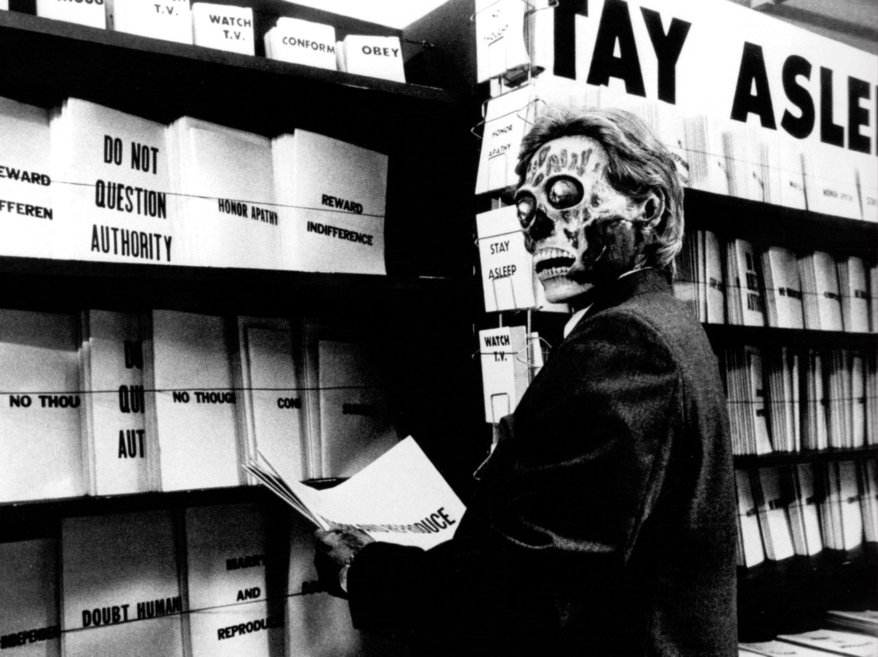 Well… maybe I haven’t done as good a job at steering clear of the election as I said I would. But then again, as a friend said to me when we were talking about this article, isn’t everything a bit political? Other friends suggested Ghosbusters, Blazing Saddles, Die Hard, The Man in the White Suit, Citizen Kane. I haven’t seen Age of Ultron yet but I bet that you could see politics there as well. You might need to squint a bit. Or, do like John Nada says and put the glasses on.