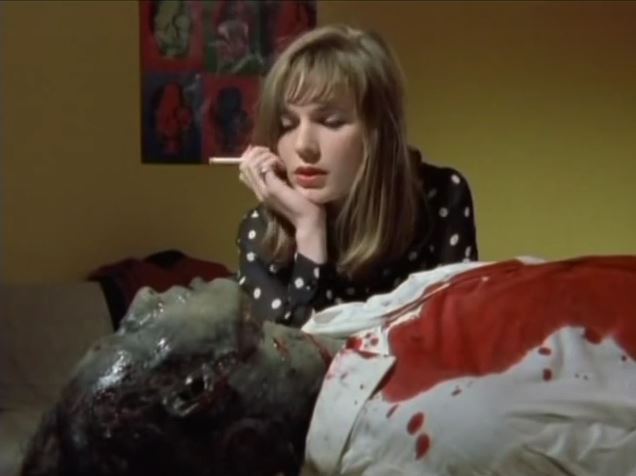I’d forgotten an awful lot about the film in the last 20 years, in particular how bizarrely rambly it is. Most of what’s stuck in my head came from the surprisingly small number of show-stopping gore sequences, and it has to be said that the effects work is still impressive today – Buttgereit knows exactly when to cut away before a prosthetic becomes too obvious. But there are so many bits where the narrative, such as it is, comes to a halt for an unexpected digression. Monika and Mark’s first date, where we’re treated to several minutes of the snarky art film parody they watch, My Breakfast With Vera. The girls’ night in that involves Monika and her mates sitting at home eating chocolates and watching a seal autopsy video. There’s even a musical number, for no obvious reason other than to remind you that the score is unnecessarily pretty given the subject matter. (It’s credited to a team of musicians, including all of the principal cast and someone called John Boy Walton.)