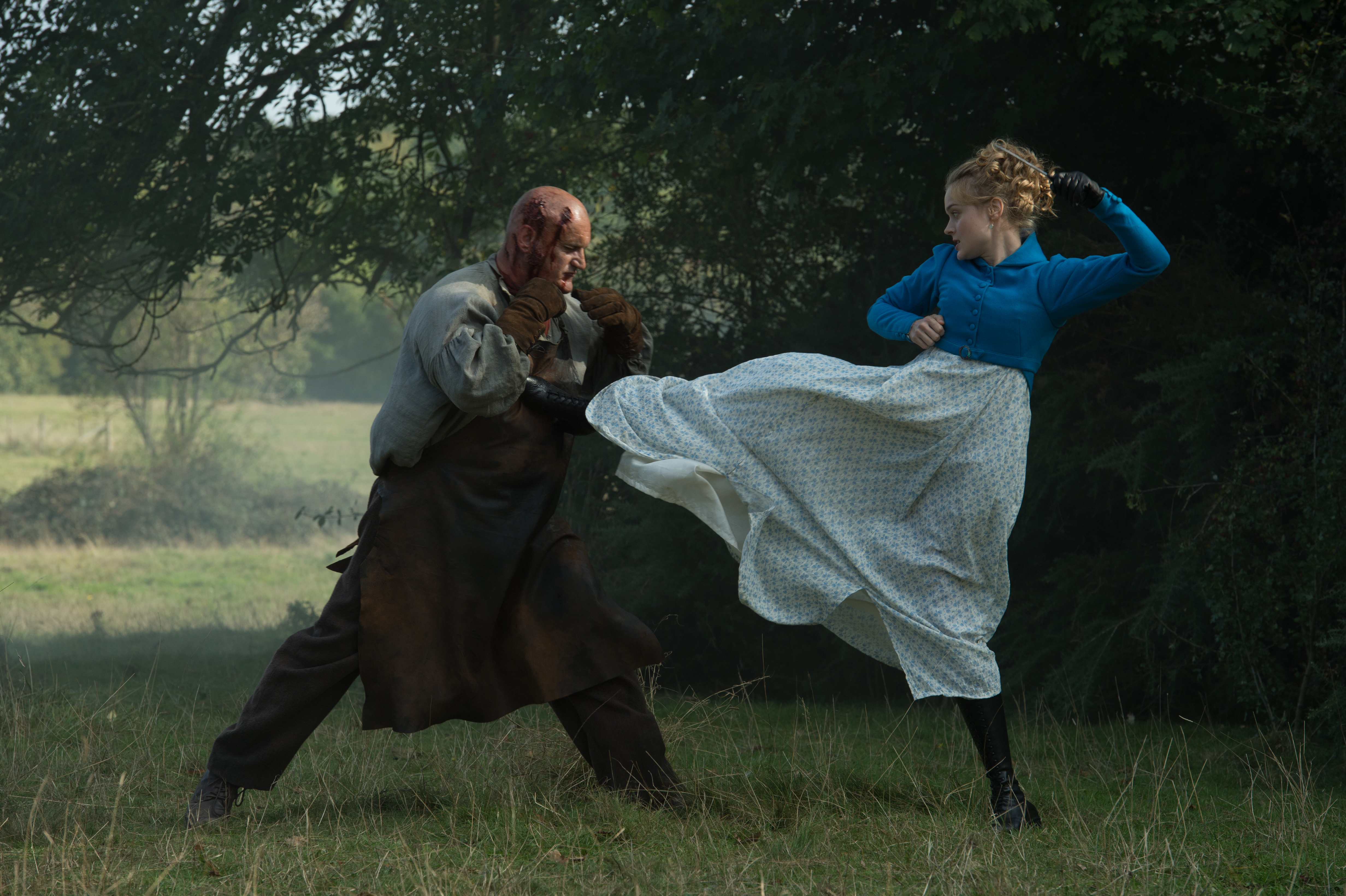 Lily James stars as Elizabeth Bennet, one of four sisters who live with their parents (Sally Phillips and Charles Dance). Mrs Bennet is focussed on getting her daughters married to wealthy men to secure the family’s future; Mr Bennet is more concerned with their not being eaten by zombies, to the extent that he has had them trained in martial arts in China, rather than the more socially acceptable Japan. As in the book, Lizzie meets Mr Darcy (here a ruthless zombie hunting soldier, played by Sam Riley with a voice so raspy that it brought to mind Stephen McHattie). She takes an instant dislike to him, but – does anyone really need a spoiler warning on this? – love gradually starts to blossom.