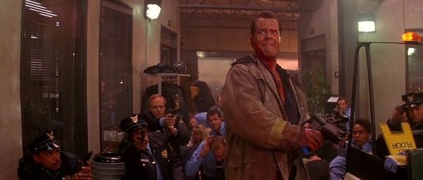 Anyway, Sybert convinces the crew that their best hope is to run their half ship aground on a reef and wait for rescue. This plan is briefly opposed by the main-dick on the crew, a chap who indicates his dickishness by wanting to cut short prayers for the Captain, because he feels that, as the ship is sinking as they pray, it might be an idea to talk about what they should actually do. This is the kind of film where disbelief in the efficacy of prayer marks you out as a wrong ’un. Anyway, Sybert wins his argument with the dick by getting an axe, barging his way to the front of the queue for the lifeboats, chopping the rope that ties it to the boat and releasing an empty lifeboat into the ocean. Someone notices it has been smashed to toothpicks before Sybert gets thrown overboard, but this struck me as the riskiest and most reckless way to win an argument since John McClane proved that a gun was loaded with blanks by shooting the blanks at a cop in the middle of Dulles Airport.