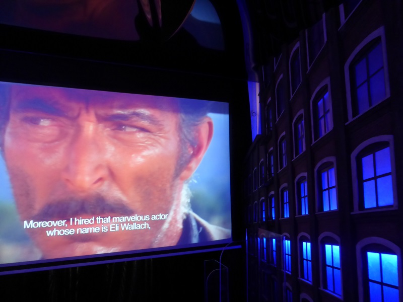 The exhibition is an intricately structured walk through Cinecittà’s role in Italian cinema. An introduction gives a brief overview of the early years of the studio, and doesn’t shy away from the awkward detail of it being originally Mussolini’s idea. That’s followed by a more detailed chronological breakdown by genre and time period, with smartly edited triple screen projections breaking down key scenes from the most important films. The story comes to an abrupt halt at the turn of the century, and is probably due for some sort of update in the future. But there’s plenty of terrific stuff there, and you’re bound to find at least one display to fall in love with. Personally, I can appreciate the importance of the collection of Fellini’s sketches and costumes, but show me a room dedicated to Sergio Leone and you have my full attention.