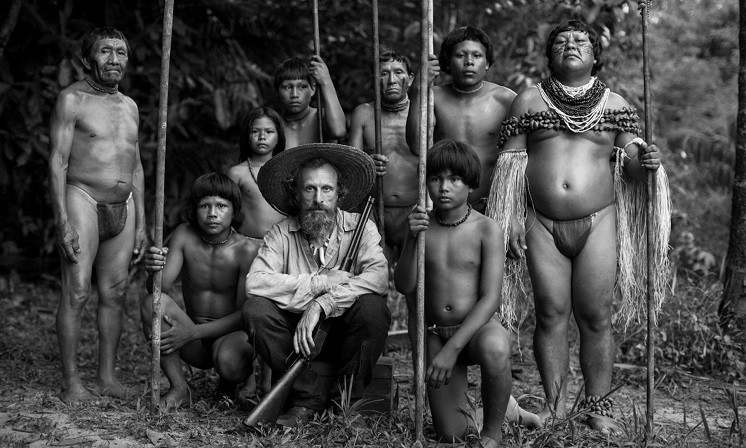 The film is entirely shot in black and white and, despite this, the Amazon basin has never looked more beautiful. Karamakate has been clear to both his companions that they must respect nature as he does. Yet their journeys take them to places brutalised by outsiders. The scarred trunks of the rubber trees are a clear indication of the violence that permeates this beautiful landscape even before they encounter the mutilated slave who begs Theo’s companion, Manduca (Yauenkü Migue) for death – a request which horrifyingly, he almost grants him.