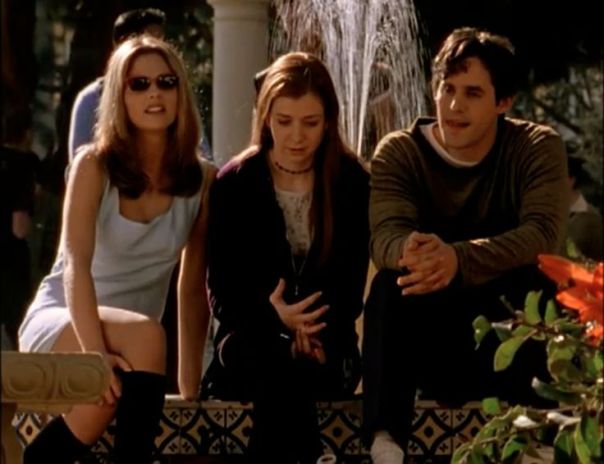 The opening episode, Welcome to the Hellmouth, focuses as much on the fear of starting a new school as it does on the vampires. There’s as much danger in negotiating a new set of rules, in making the wrong friends, in sitting at the wrong table in the lunchroom as there is in the prowling undead. When Giles tells Buffy who he is, and that he knows who she is, her dismay is not merely that she’ll have to risk her life here, too, but also that she won’t be getting the chance to re-invent herself, to affect the change that a new school should offer.