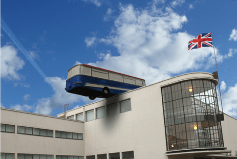 I can’t remember when I first saw The Italian Job or what I thought of it with any degree of accuracy but I put the vague affection I have for it down to the Minis – I’ve only owned three cars and two of them were Minis (one white, one blue: by rights I should now be driving a red Mini rather than a black VW). Well, that and not remembering much about it; I have a sneaking suspicion that that might help. But even I remember a few key things and chief amongst those (apart from quite how beautiful Michael Caine was then) is the cliff-hanger ending and the red, white and blueness of both Minis and coach. This is a flag-waving film, with the coach – precariously balancing half on and half off the cliff at the end – as the flag. And of course it’s a 1960s film, and – caution: ridiculous generalisation approaching – the sixties were all about London. So in this year of London-centred flag-waving, there’s a certain logic to taking another, playful look at The Italian Job. In Bexhill-on-Sea. In the form of an art installation.